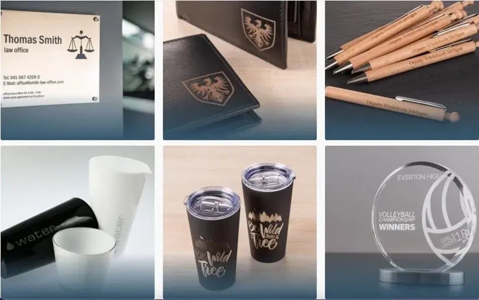 • Premios, trofeos: Los premios hechos de acrílico, mármol o madera se vuelven llamativos gracias al grabado láser.